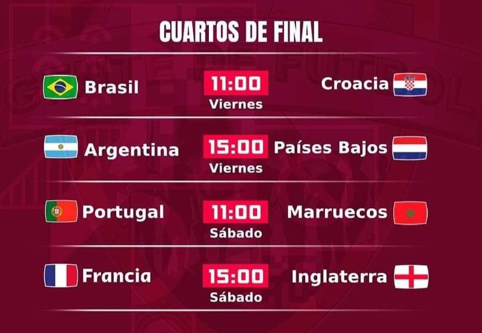 Qatar2022TODO LISTO PARA LOS CUARTOS…Así se jugará los cuartos de final de la Copa del Mundo.SPORTAmazonia1SPORTAmazonia